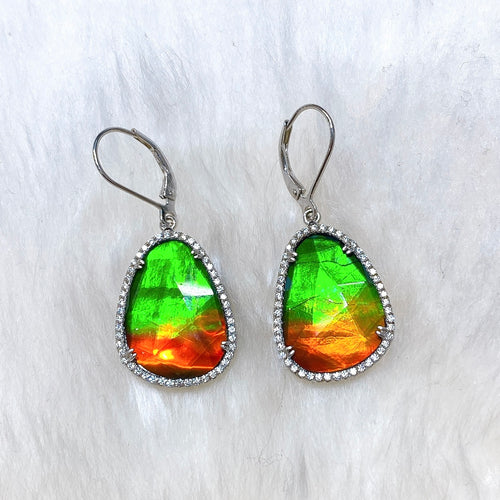Ammolite Pendant Sterling Silver Pendant with White Sapphire